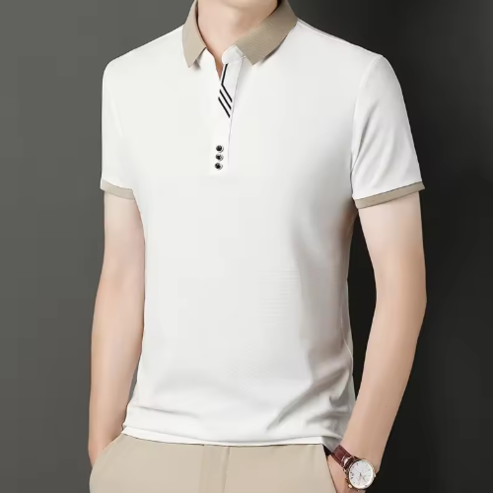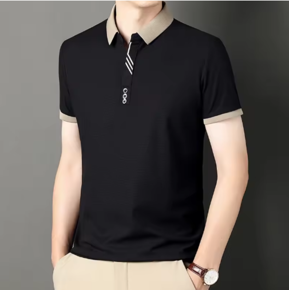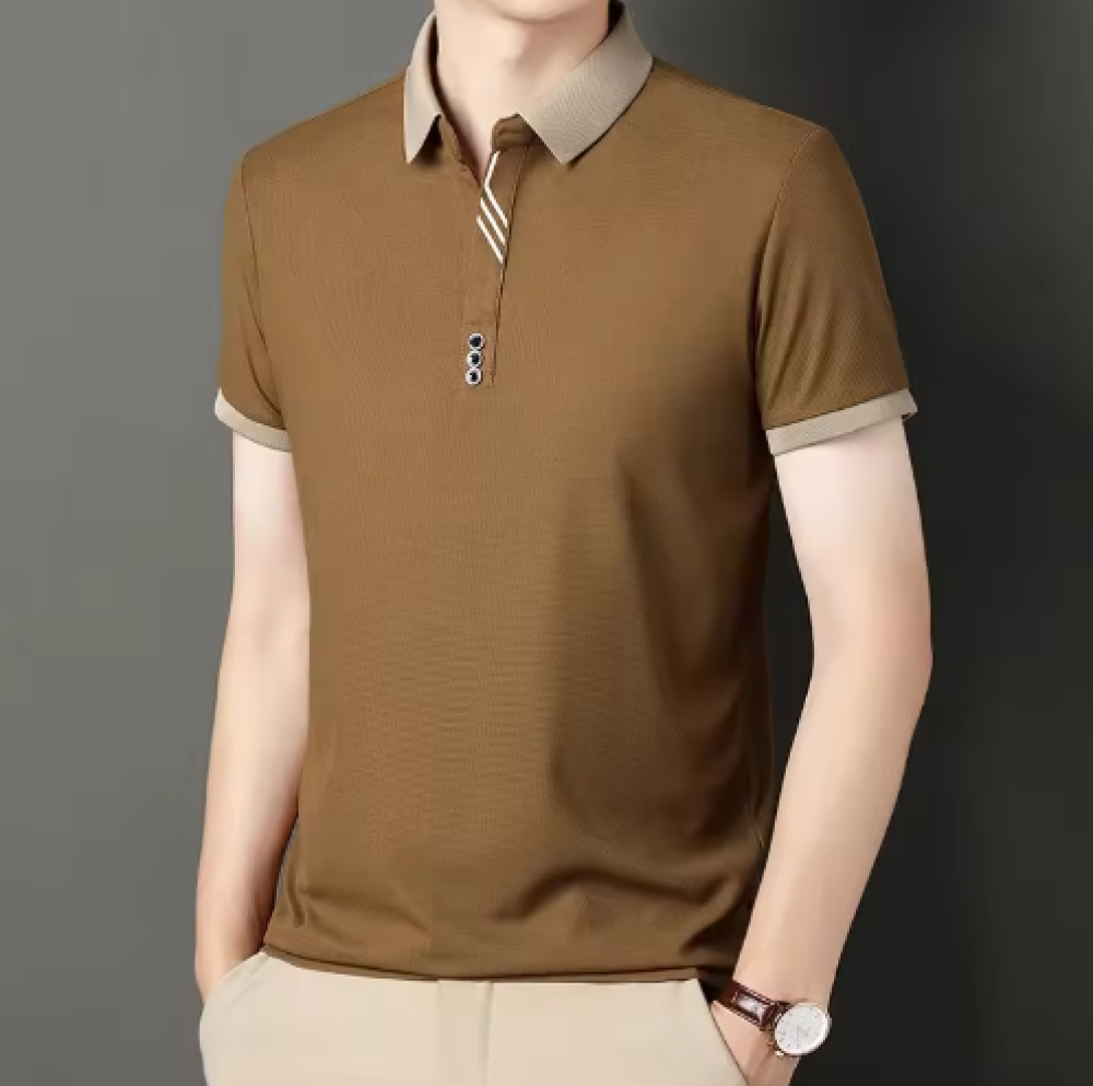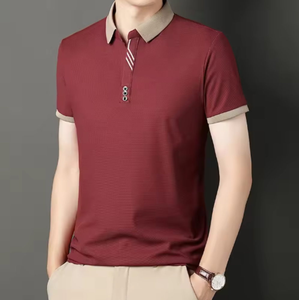 قميص بولو رجالي كاجوال بلون سادة وأكمام قصيرة، قميص صيفي مريح.