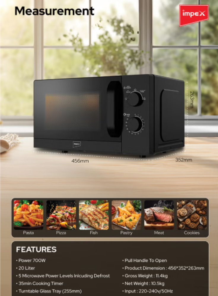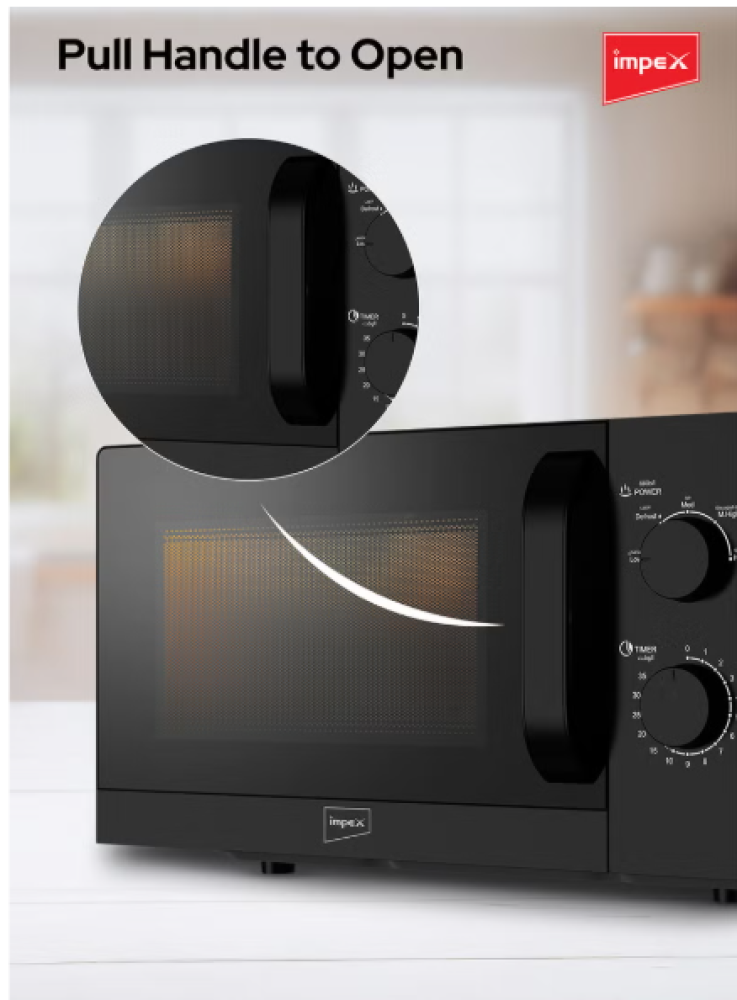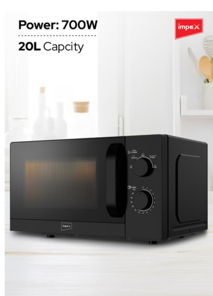 Impex 20 Liters Microwave Oven Compact Countertop Kitchen Microwave 700W Power 5 Power Levels with Defrost 35 Min Timer 255mm Glass Turntable | MO 8101A Black 20 L 700 W MO 8101A White With Black 20 L 700 W MO 8101A Black