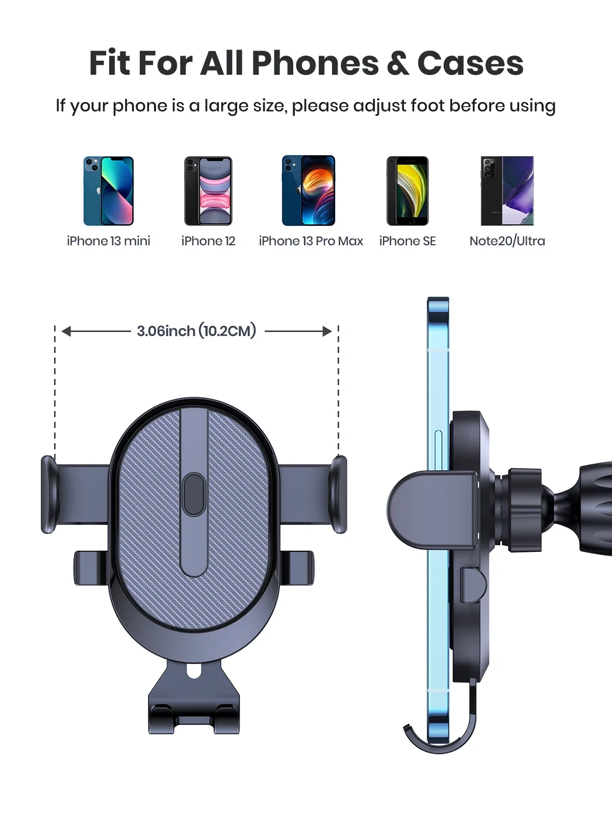 1. 【 2023 mais recente design-nunca caia 】 montagem do telefone do carro adota 2023 mais recente design de bloqueio à prova de queda que mantém o telefone firmemente na ventilação. O gancho do grampo pegará uma das lâminas de ventilação do carro. A placa de mola e a porca de aperto fornecerão fixação absoluta. Este suporte do telefone do carro tem grampos estáveis da trapézio-estrutura com esponja shockproof e borracha engrossadas, que poderiam prender o telefone mais estável do que outro. Ele nunca vai cair como outros produtos, não importa o quão acidentada a estrada é.