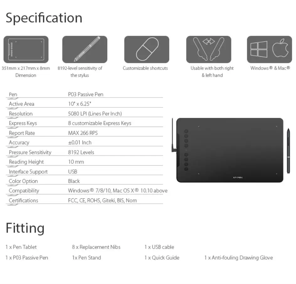 Compatible with Windows® 10/8/7, Mac OS X® 10.10 and above. Also compatible with many major designer software such as Photoshop®, SAI®, Painter®, Illustrator®, Clip Studi®o, and more.
