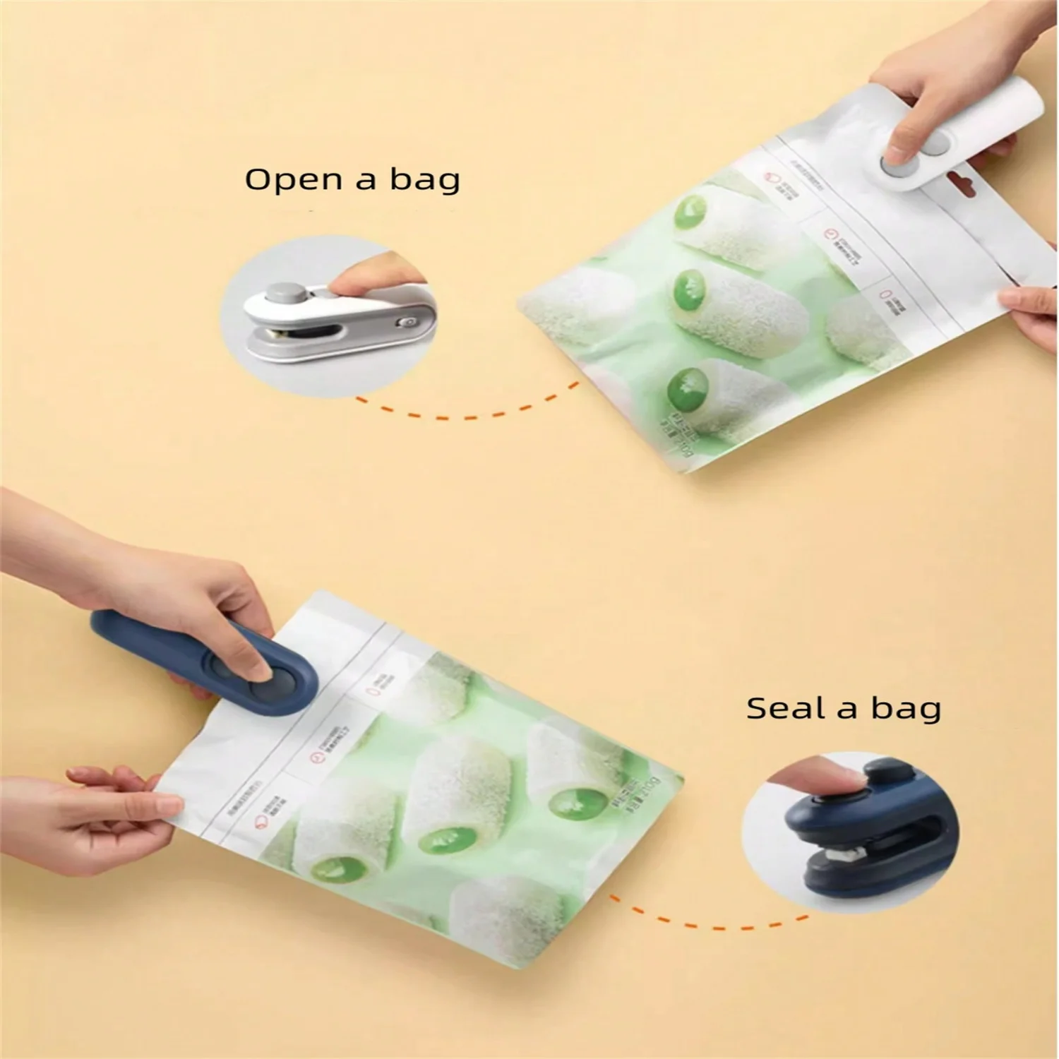 3. Say goodbye to stale snacks with the Handheld Heat Sealer, a mini sealing machine that effortlessly seals plastic snack bags to keep contents fresh. This household heat sealer is a must-have for any kitchen.