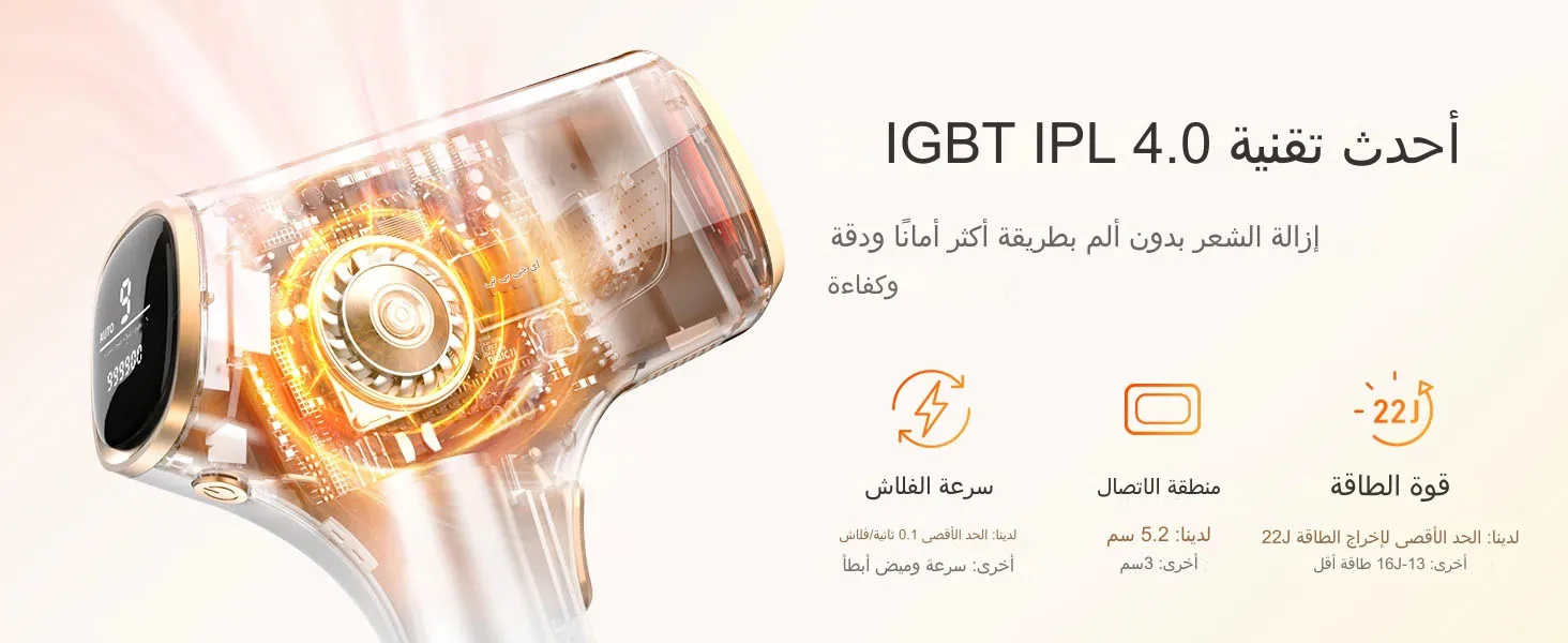 ● IPL dual pulsed intense flash function permeates deep into the hair follicles forefficient and fast painfulhair removal