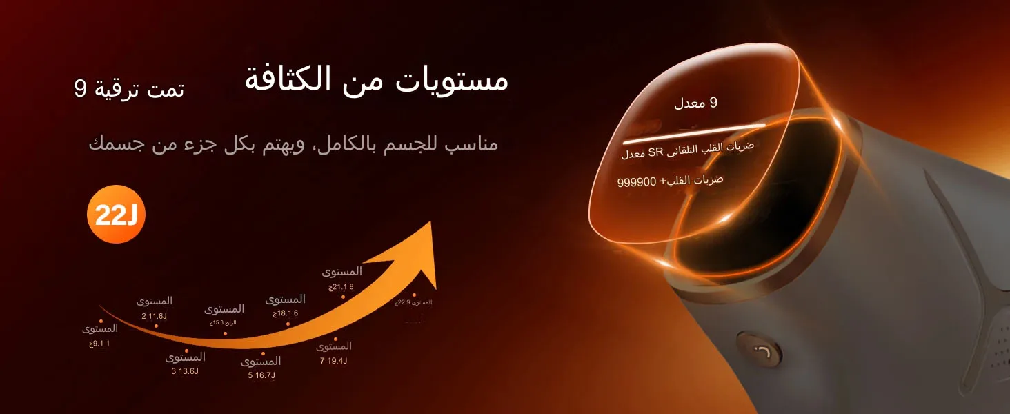 ● Adjust the intensity according to individual hair removal needs. 9-speed adjustment, easy to handle all parts of the body, adapts to a variety of hair and skin color, can adjust the gear according to different body parts, easy to use multiple body parts.
