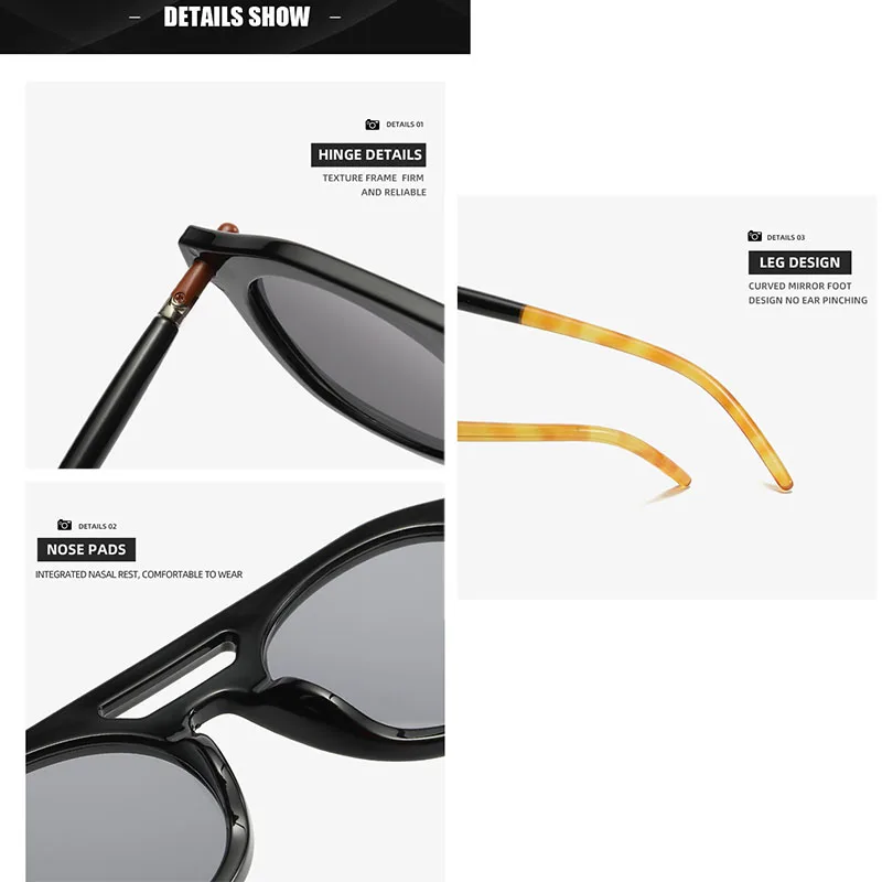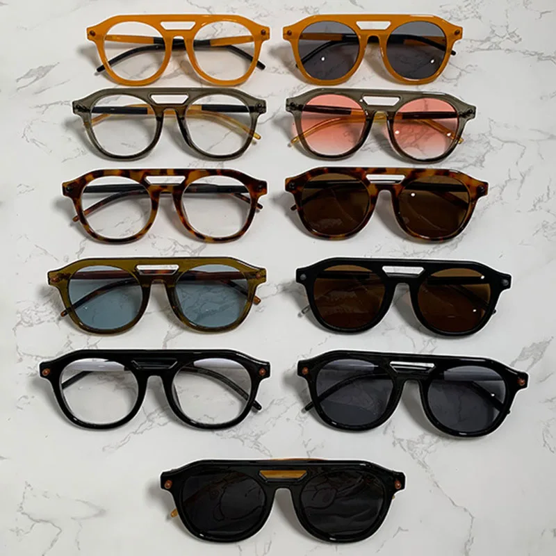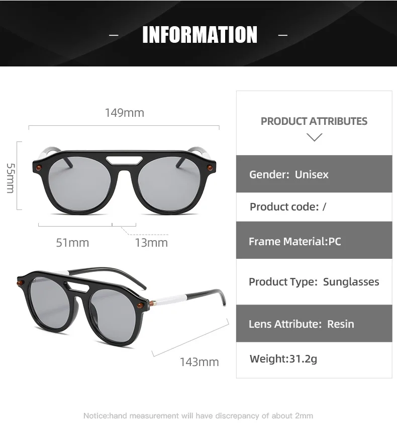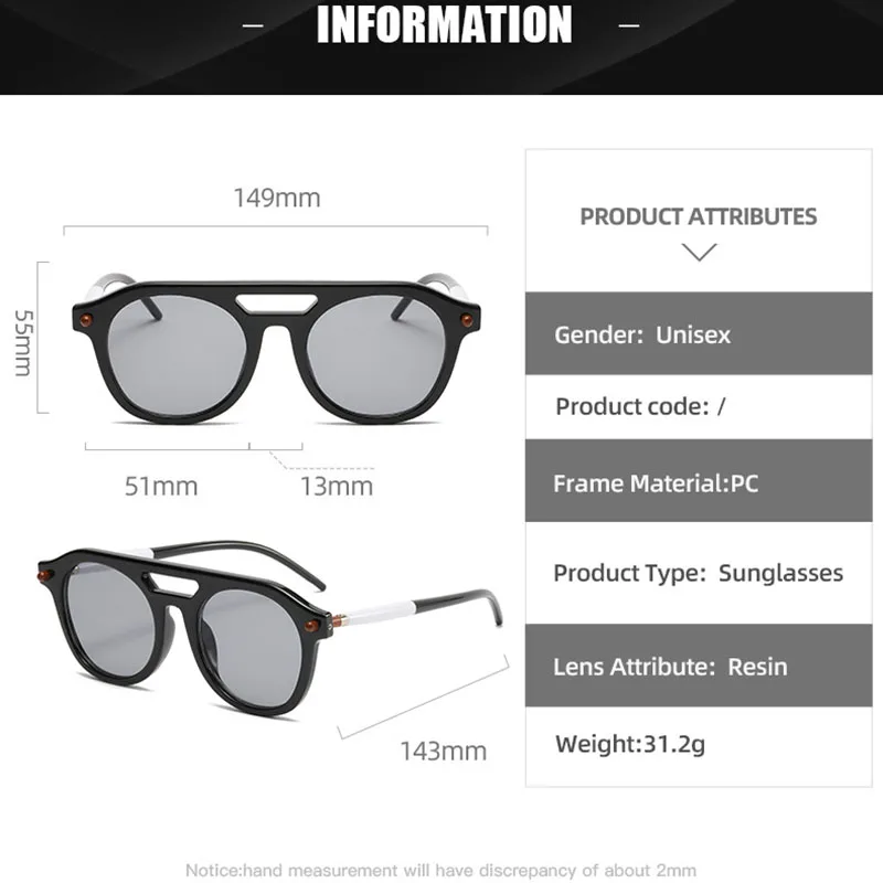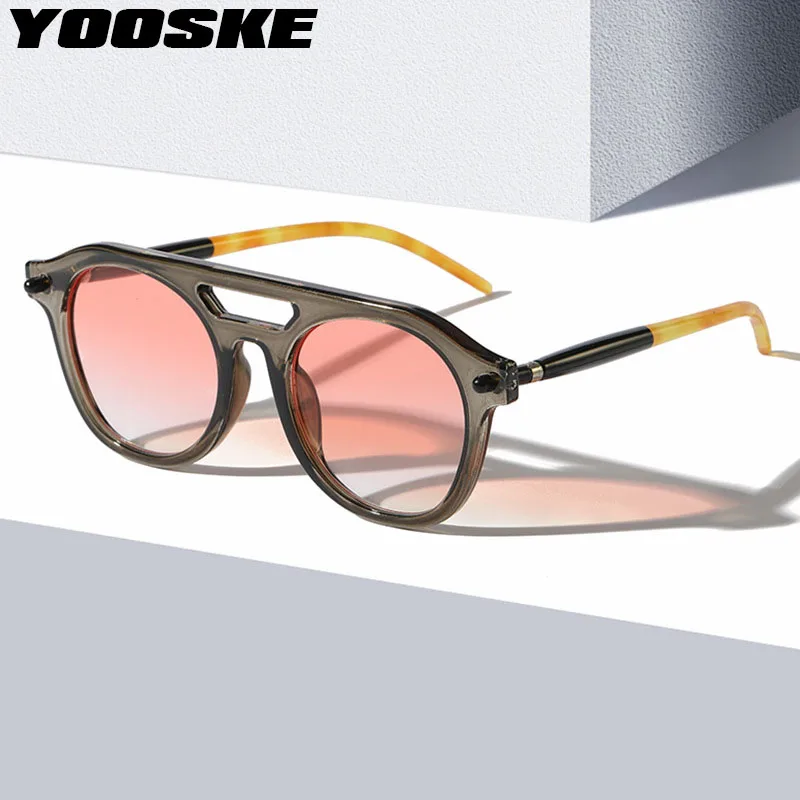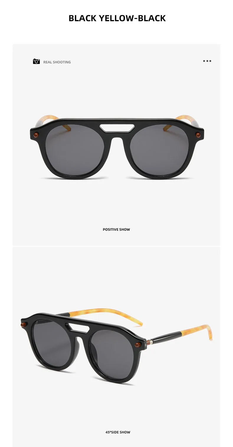 YOOSKE Retro Double Beam Sunglasses for Men and Women, Black and Pink Sunglasses, Personal Glasses, Driving and Travel Style, Unisex