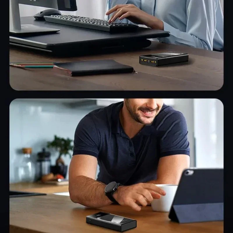 Despite its massive capacity, this power bank is surprisingly compact and lightweight, making it ideal for travel, outdoor adventures, or everyday use. Its sleek and ergonomic design fits comfortably in your hand or pocket, allowing you to carry it with ease wherever you go. Whether you're commuting to work, exploring the great outdoors, or simply relaxing at home, this power bank provides reliable backup power whenever you need it most.